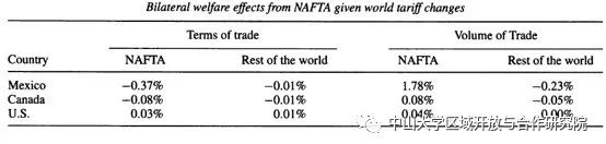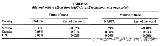 2.NAFTA关税降低和贸易赤字的双边福利影响