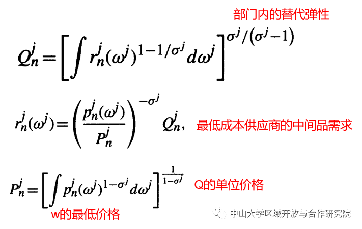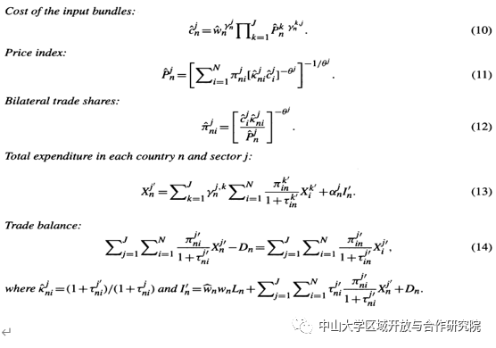 8.非贸易部门:模型设定跟贸易部门类似,只是把贸易成本设为无限大,所以厂商总会在本地采购中间品