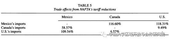 (2)贸易从世界其他国家,转移至NAFAT集团内。
