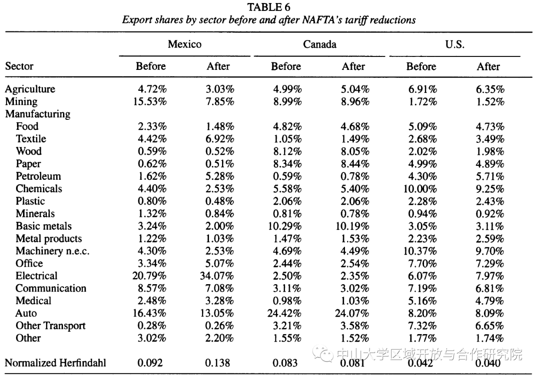 (2)北美自由贸易协定加强了这些国家在该协定之前的贸易依赖性,因此加拿大和美国从墨西哥采购了更多的商品,而墨西哥从加拿大采购了更多的商品。