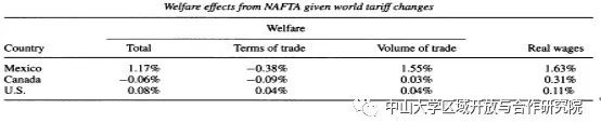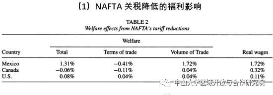 (1)NAFTA通过在集团内创造更多贸易,为其所有成员国带来积极的福利效应。