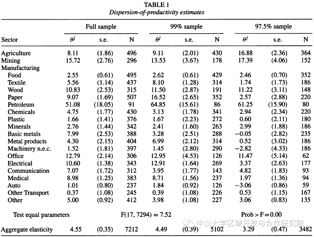 (唯一需要估计的参数)部门的生产率分散度为:![]()