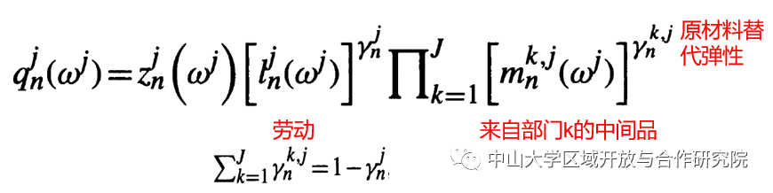 (2)中间品的生产投入就是劳动力和其他部门生产的中间品