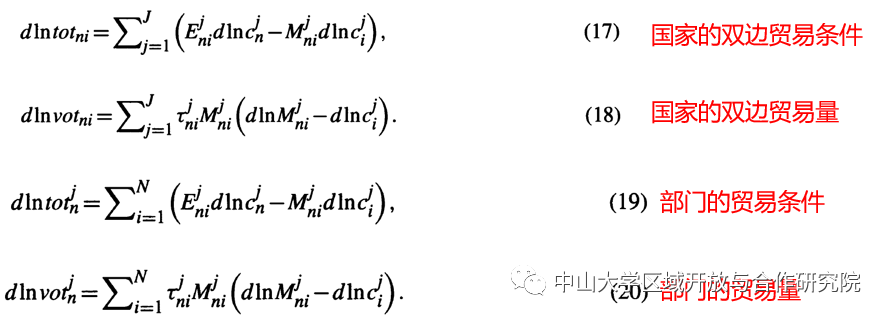 12.相对变化的均衡:不是求某个关税政策下的均衡,而是求从政策A转变到政策B后,工资和价格的变化。可以将模型与基准年的数据精确匹配,估计纯关税变化对均衡的影响,不用估计模型中难以识别的参数,如生产率、冰山成本等。