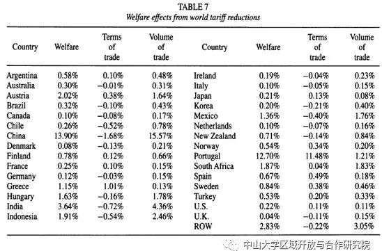 (2)生产力比较分散,进口的可替代较低,各国国家的生产率差异都不多,所以对某些国家降低关税就会引起与这些国家贸易量的大幅上升;