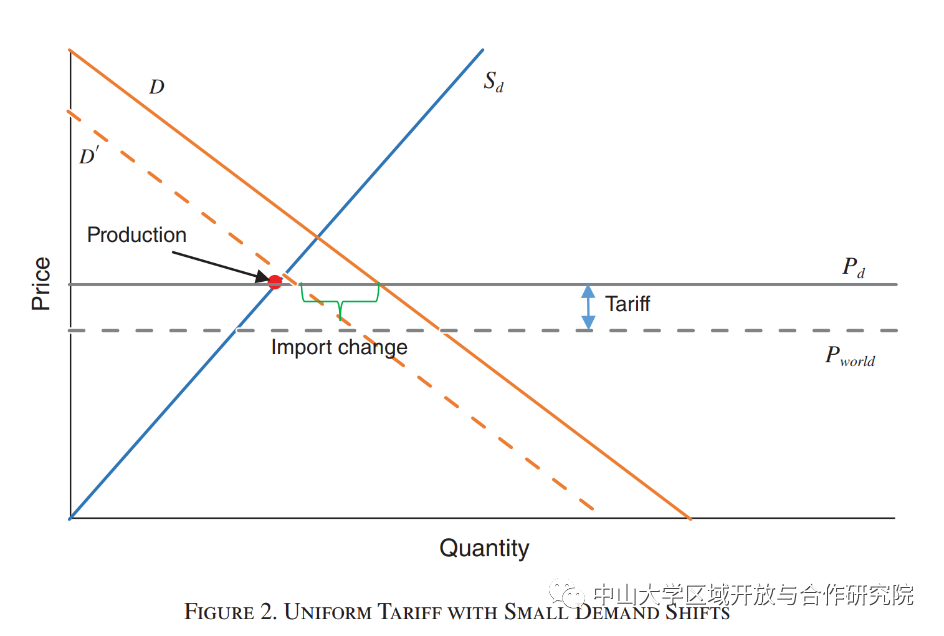 统一关税,生产者剩余并不会直接通过进口来影响均衡,它取决于通过国内的市场出清。