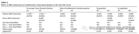 因此没有证据支持间接高铁连接对协作式创新的质量有积极影响。