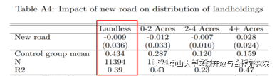 本文发现对于没有土地的农业工人来说,离开农业的意愿是最强烈的,并且这种影响效果在土地持有规模中是单调递减。没有土地的农业工人减少了11.7个百分点,占对照组平均值的百分比更大(这和他人的研究结果相似,即印度的土地所有权可以显著降低移徙和参与非农业职业,伴随着村村通,土地资源不同的人们对于农业生产活动的回应是不同的)。
