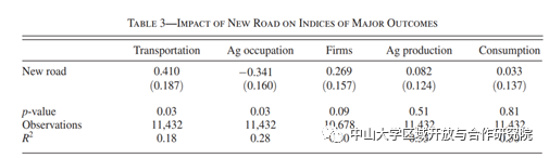 这些结果,概括了本文的基本结论:农村道路导致运输服务的增加和劳动力在农业中的重新分配,但不会对农村企业、农业生产或者预期消费产生特别大的影响。(本节的后面部分研究了这些指数的组成部分,以更详细解释新修道路的影响,并进行了异质性分析。)