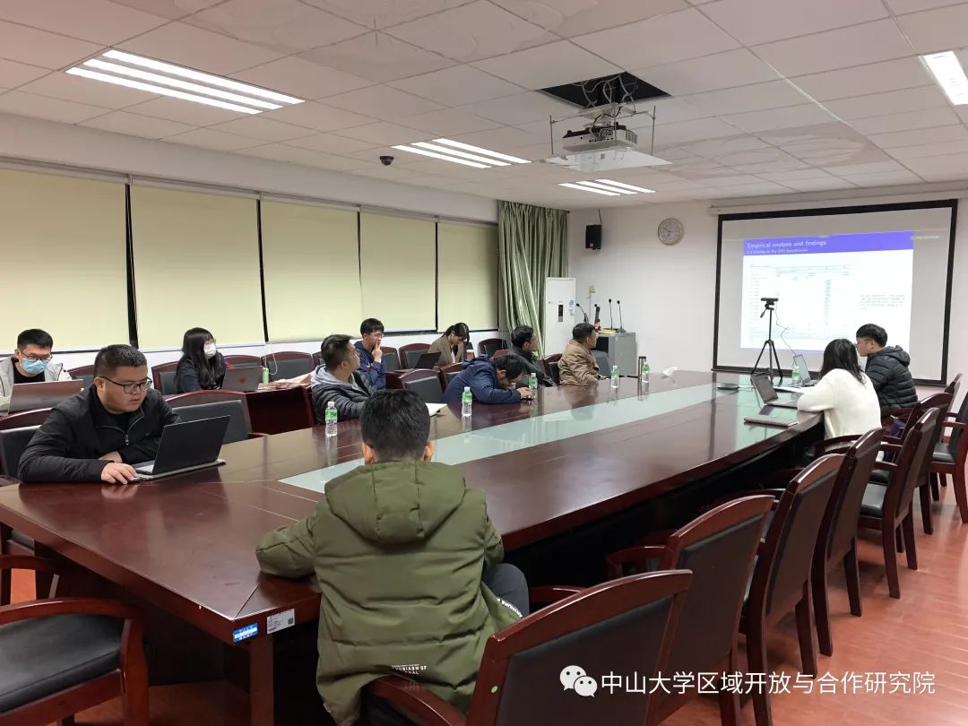 2021年12月21日晚18:30-19:30,中山大学区域开放与合作研究院文献研读会议以线上和线下相结合的方式成功举行。本次学习讨论会由谢宇平博士生分享文献《Trade policy uncertainty and innovation: Firm level evidence from China's WTO accession》。参加学习讨论会人员包括毛艳华教授、李兵副教授、副研究员、博士后以及博士生和硕士生等,另有澳门科技大学、澳门城市大学博士生通过线上形式参与了本次学习讨论会。