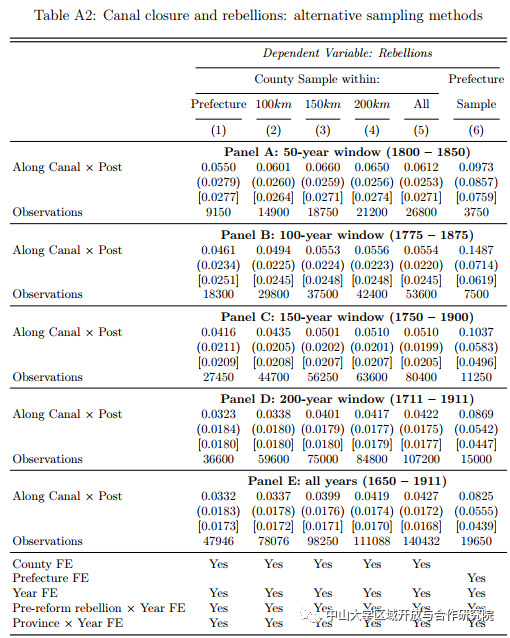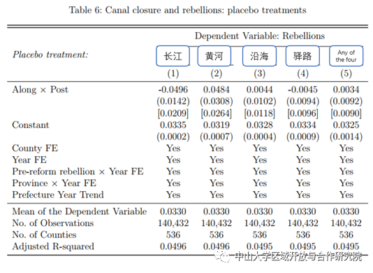 以上两次安慰剂检验表明:真正影响社会叛乱的是大运河的废弃。