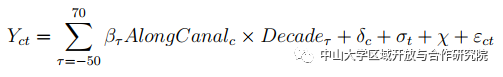 在基准回归中,处理组和控制组并没有一个很好的定义:一方面,部分运河县会更依赖运河从而受到的冲击影响更大;另一方面,运河的关闭也会波及非运河县。