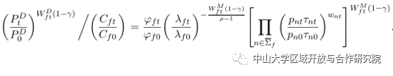 本文首先构建具有代表性的美国消费者的嵌套CES效用函数,然后结合实际情况得出美国对中国企业产品以及其他国家出口商产品的需求为:
