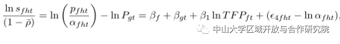 代入中国企业的对数份额方程来修正质量偏差,得到: