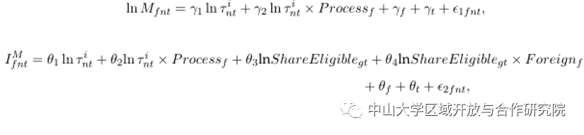 中国加入WTO后,利用中国海关的企业层面数据和分类进口关税数据,估计了以下进口价值和进口参与方程: