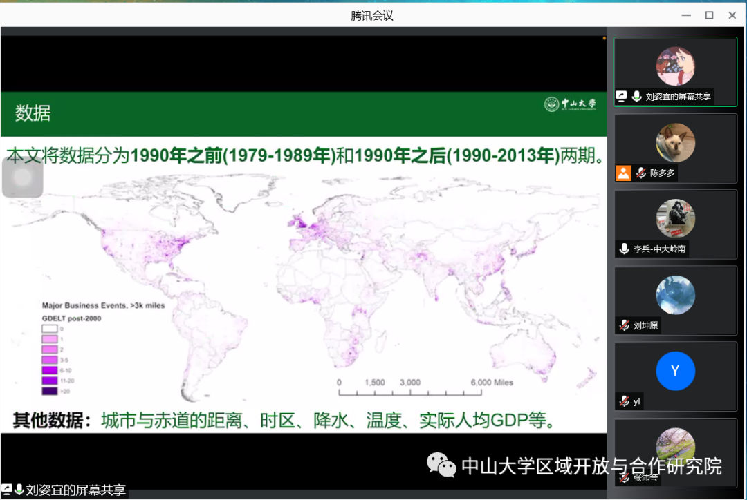 2021年8月10日晚19:00-20:00,中山大学区域开放与合作研究院文献研读会议以线上方式成功举行。本次学习讨论会由刘姿宜同学分享文献。参加学习讨论会人员包括毛艳华教授、李兵副教授、副研究员、博士后以及博士生和硕士生等,另有澳门科技大学、澳门城市大学博士生通过线上形式参与了本次学习讨论会。