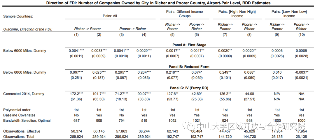 此外,还估计Reduced form对其他城市对的影响,使用fuzzy RD方法进行工具变量估计。
