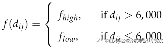 其中,表示与i相距6000英里的在邻域内的城市总数,-为恰好在6000英里以内的城市数量。和为高低航线固定成本下开通航线的概率,。