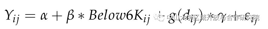 而机场周围的经济活动可能受到影响,且在较近距离时受到的影响比较大,故将距离变量加入模型(其中为网格中心到机场i的距离的对数),根据与机场的空间距离来估计缩放形式的影响: