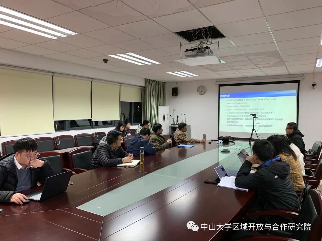 2021年12月30日晚18:30-20:45,中山大学区域开放与合作研究院文献研读会议以线上和线下相结合的方式成功举行。本次学习讨论会由李子文同学分享文献《How You Export Matters: Export Mode, Learning and Productivity in China》。参加学习讨论会人员包括毛艳华教授、李兵副教授、副研究员、博士后以及博士生和硕士生等,另有澳门科技大学、澳门城市大学博士生通过线上形式参与了本次学习讨论会。
