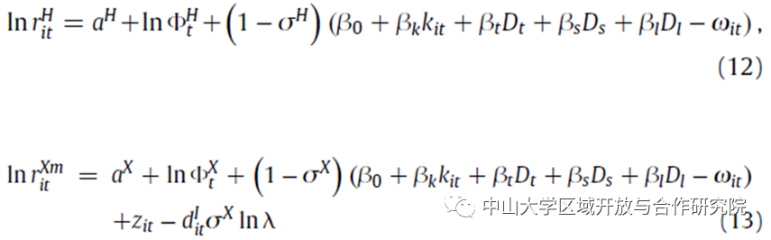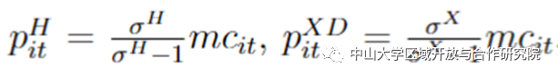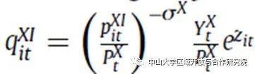 。国内消费者将收入的一定比例 (α) 用于国内商品,其余部分用于进口。σH (σX)表示国内商品(国外商品)的替代弹性,zit表示企业特定的需求冲击。、表示中国商品的价格指数