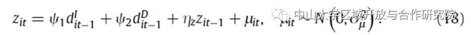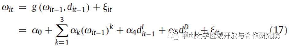 生产率是一个随时间变化的马尔可夫过程,依赖于之前的生产率和企业出口决策,在进入出口市场之前可能存在的生产率差异通过将滞后的生产率纳入生产率演变中加以控制。