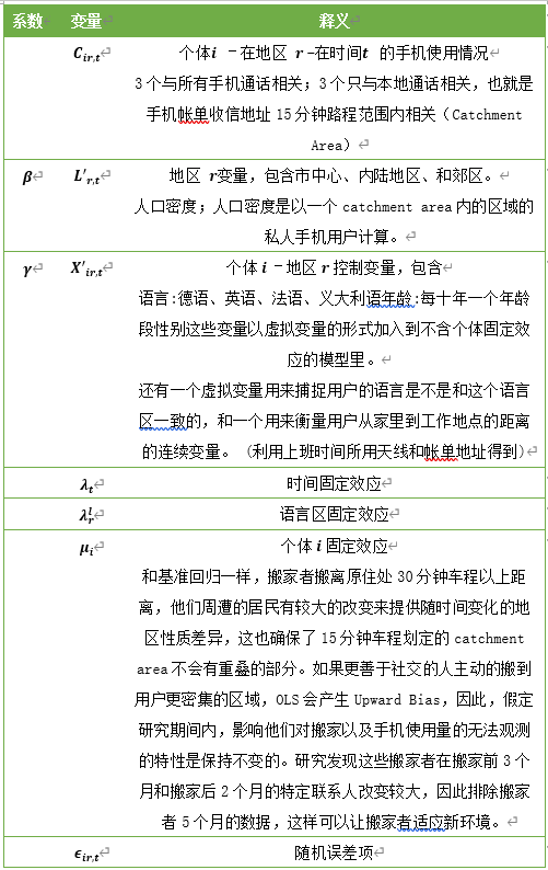 如果有不可观测的个体特性让有相同特性的人生活在各自的附近,那么这篇文章计算的距离变量就会跟误差项负相关。所以,这篇文章识别因果关系主要来自联系人与被联系人之间的距离变化,当两者距离发生变化时,他们的联系模式可能会发生变化,这种距离变化的来源主要有两个: